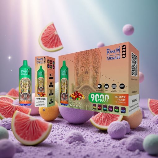 RandM Fumot Tornado 9000 Puffs Display RGB e Liquido 18 mL Caramella Arcobaleno